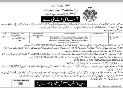 Government of Sindh Announces Vacancies for Account Assistant