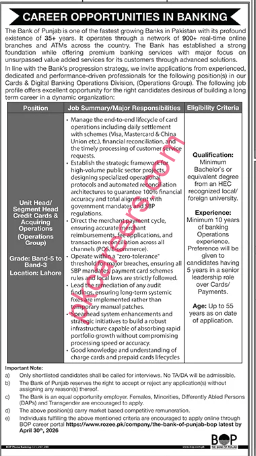 The Bank of Punjab (BOP), a leading financial institution in Pakistan with over 35 years of heritage and a massive network of 900+ branches, is officially expanding its Cards & Digital Banking Operations Division.
